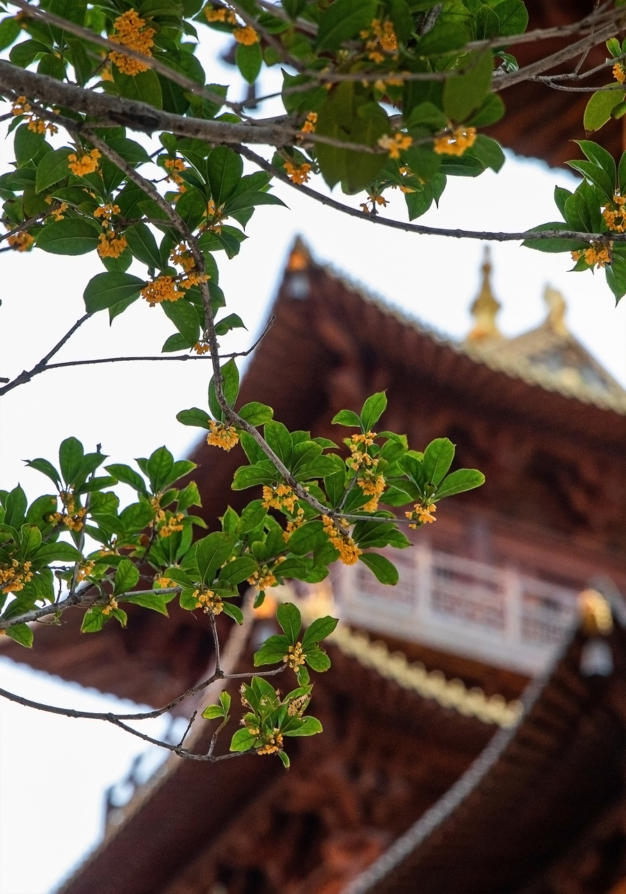 近日,满城桂花飘香。静安寺旁多株淡黄、金黄的桂花树不仅装点了秋天,还为路人送来了一缕缕香气 新民晚报记者 周馨 摄